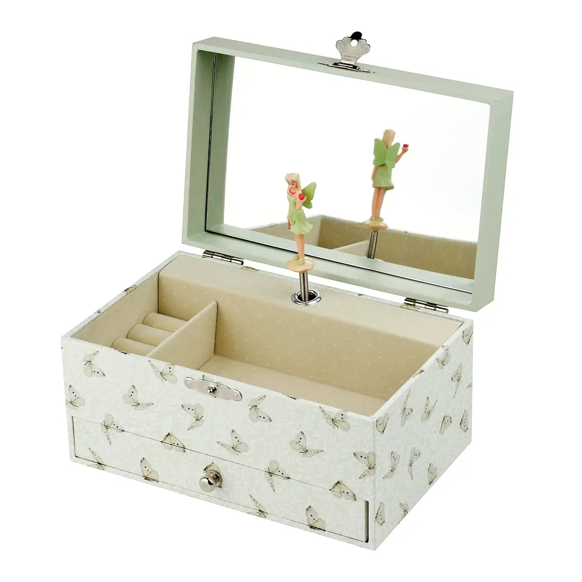 A MUSIC BOX TO STORE YOUR TREASURES: This music box with a drawer, a large mirror and a ring sizer, will amaze the girl who will store her treasures in it. MAGIC: Operate the crank and the figure comes to life as if by magic to the sound of music! IDEAL FROM BIRTH: This musical box will be the most beautiful effect to decorate the child's room. An original birth gift full of poetry! TIMELESS: A music box is a timeless object that you keep carefully. His melody and the memories that accompany it will remain etched in the child's memory for a long time. A MAGICAL BRAND: Immerse yourself in the magical world of TROUSSELIER with their music boxes, night lights, comforters, musical mobiles and other toys that will rock the childhood of your little ones. TROUSSELIER - Fairy - Flower Fairies © - Musical Jewellery Box - Ideal Gift for Young Girls - Mozart's Magic Flute Music - Green