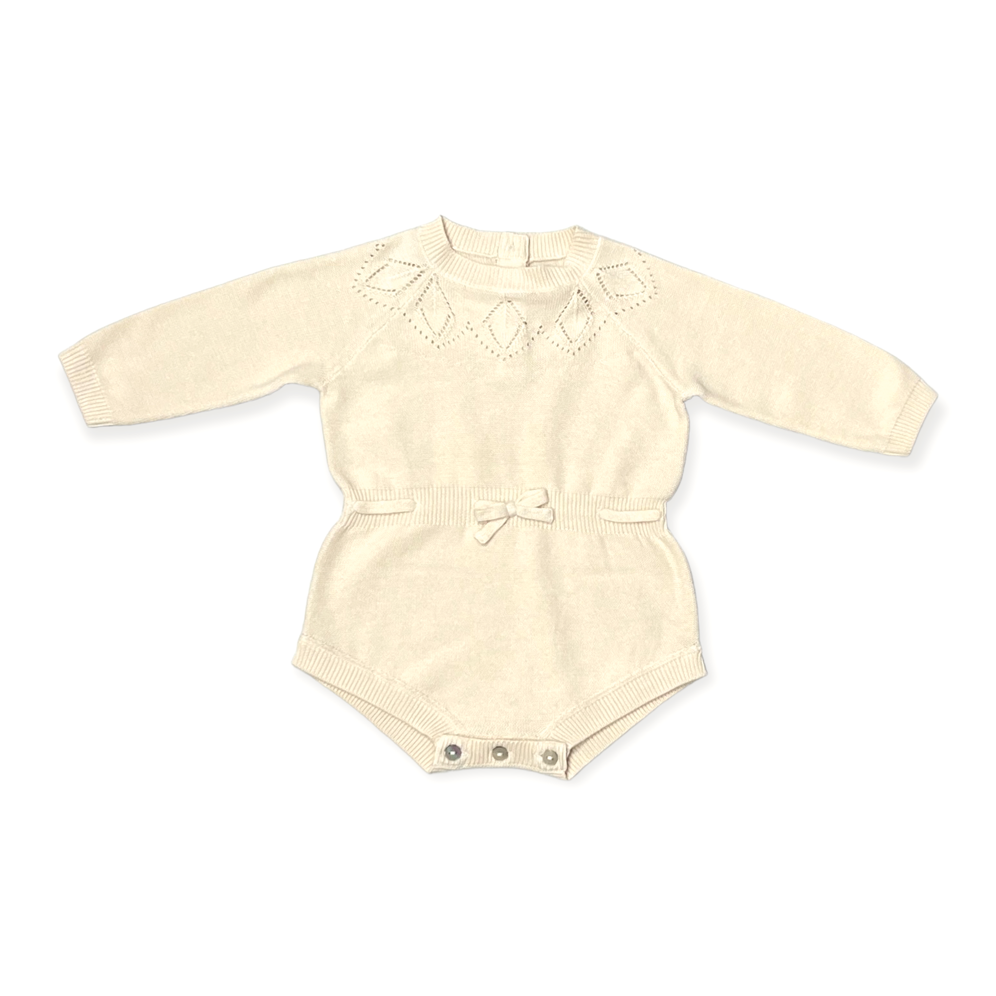 Milan Pointelle Knit Baby Girl Bodysuit 3pc SET (Organic): 0-3M / Cream